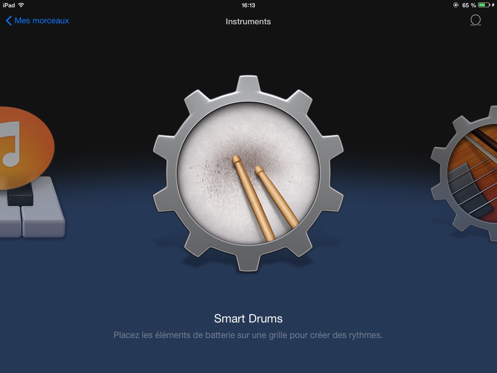 Vous tombez par défaut sur les Instruments . Glissez pour accéder à Smart