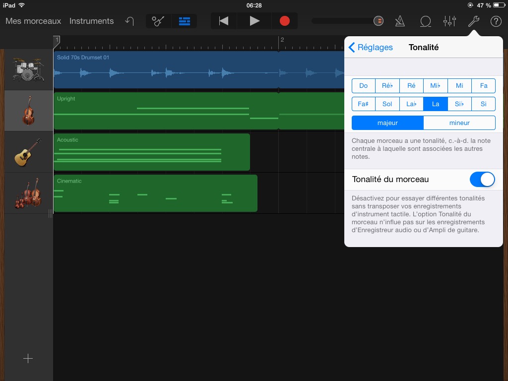 tonalité de Do majeur à La majeur. Vous pouvez, bien sûr, tester d’autres