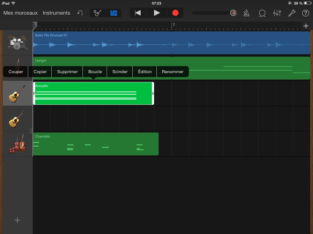 double-tap sur l’icône de cette même piste ouvre l’écran de l’instrument.