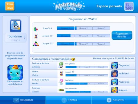 vous montrera les progrès de vos enfants dans tel ou tel domaine.