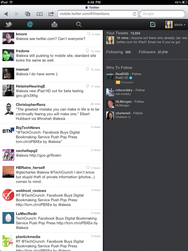 Voici à quoi votre Twitter accédé à l’adresse twitter.com ressemblera sur un iPad , lorsque vous